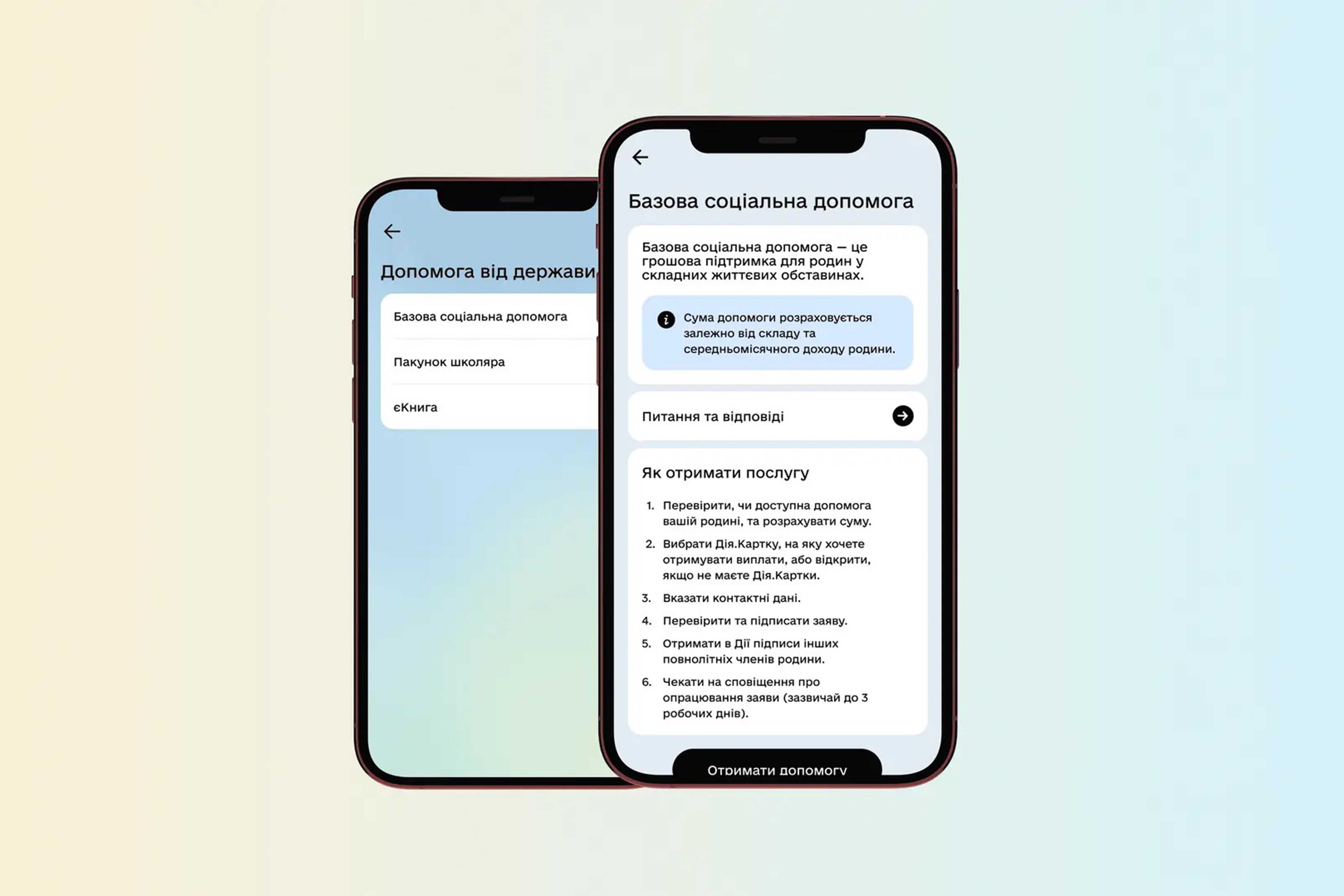 Зараз сервіс дає змогу оформити базову соціальну допомогу, якщо отримуєте одну або декілька видів допомоги: