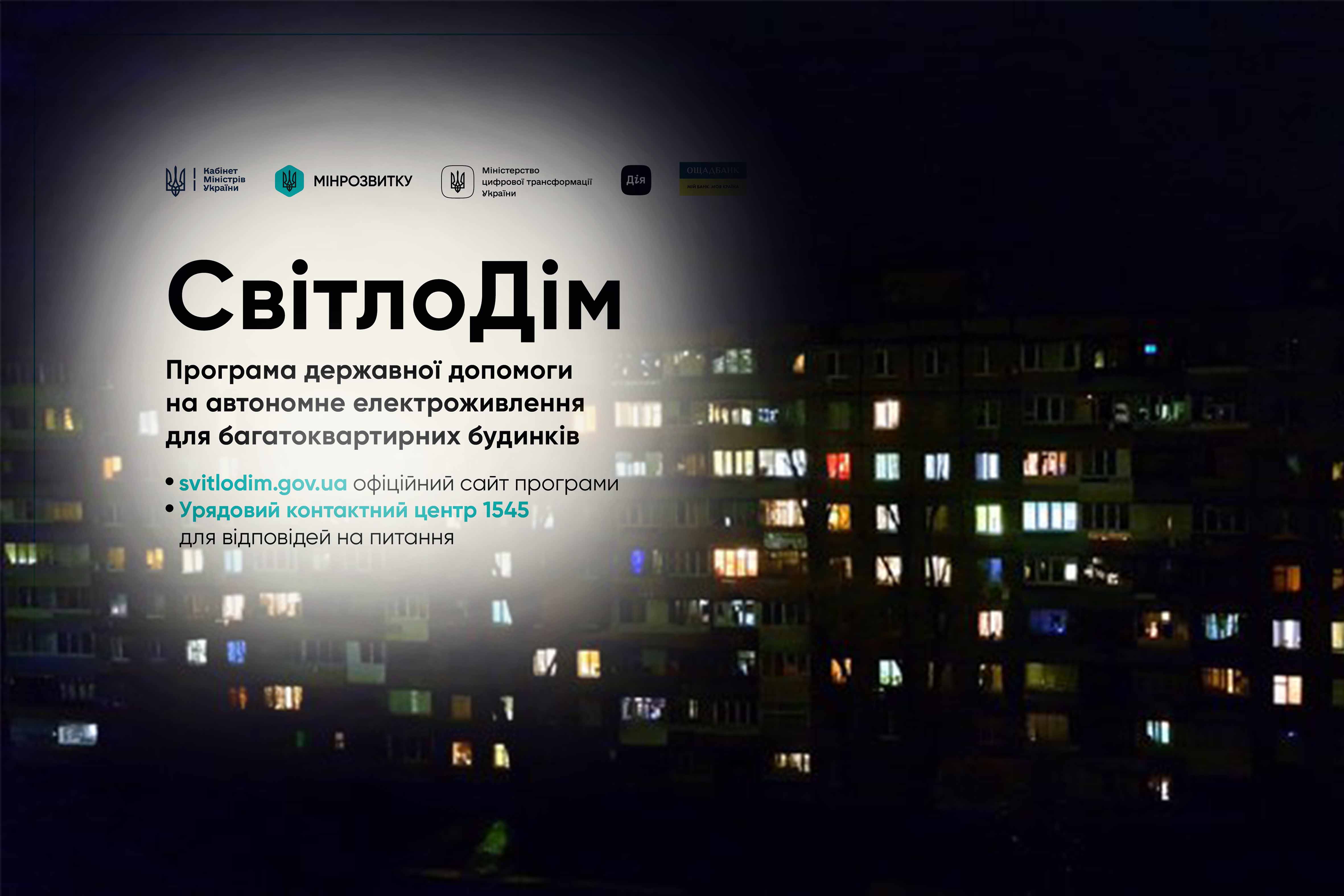 Урядова програма СвітлоДім (послуга “Допомога багатоквартирним будинкам”) реалізується спільно Міністерством розвитку громад та територій України, Міністерством цифрової трансформації України та АТ “Ощадбанк” із залученням банків партнерів (партнером може бути будь-який банк України).